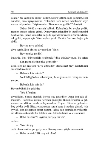 acaba? Ne yaptık ne ettik?” dedim. Sonra yattım, sağa döndüm, sola