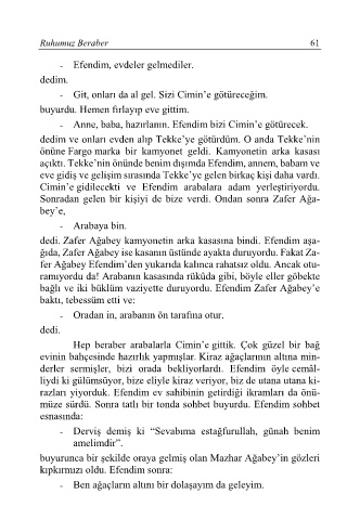 dedi. Zafer Ağabey kamyonetin arka kasasına bindi. Efendim aşa-