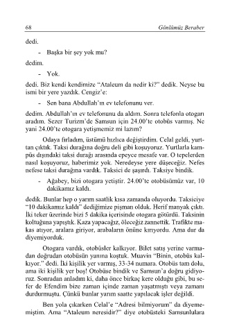 dedim. Abdullah’ın ev telefonunu da aldım. Sonra telefonla otogarı