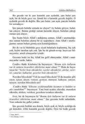 ticaretleri zikirlerine mani olmaz.” İşte gecenin bedri onlardadır.