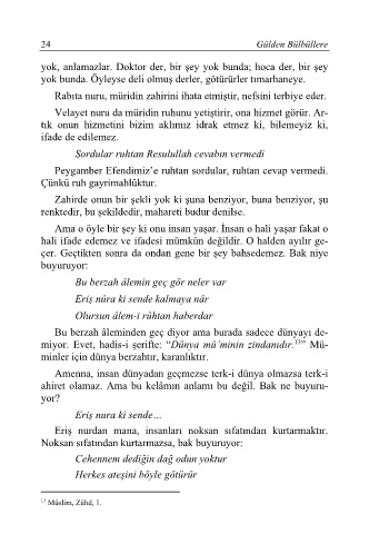 Bu berzah âleminden geç diyor ama burada sadece dünyayı de-