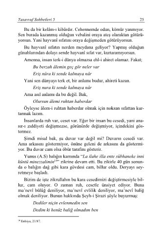 Öyleyse âlem-i ruhtan haberdar olmak için noksan sıfattan kur-