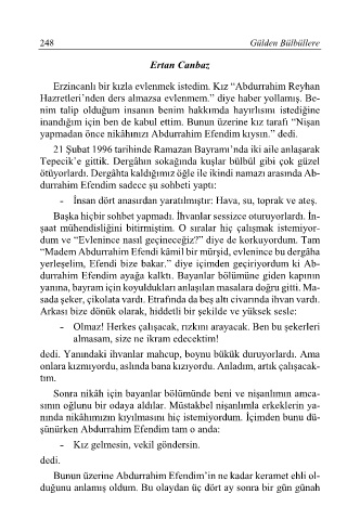 yapmadan önce nikâhınızı Abdurrahim Efendim kıysın.” dedi.