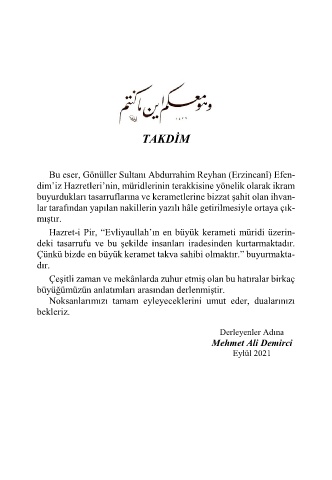 Bu eser, Gönüller Sultanı Abdurrahim Reyhan (Erzincanî) Efen-