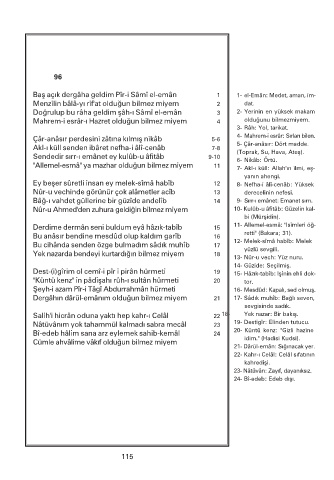 Çâr-anâsır perdesini zâtına kılmış nikâb 5-6 4- Mahrem-i esrâr: Sırları bilen.
