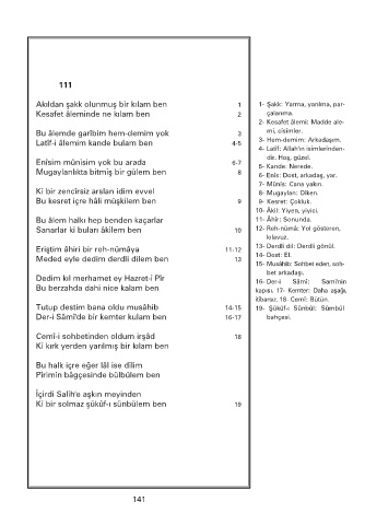 Latîf-i âlemim kande bulam ben 4-5 3- Hem-demim: Arkadaşım.