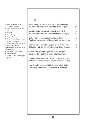 9- Mebde-i asl: Kök, asıl, yara- Bulup bir mürşid-i kâmil bütün bey' ü şirâdan geç 10