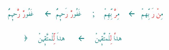 Arkadaşlar burada daha önceki örneklerde görüldüğü gibi okun sağında ki bölüm Kur’an-i Kerim’de geçen orijinal örneklerdir. İşaret okunun solunda ki bölüm ise, sağdaki bölümü tecvitli olarak nasıl okumamız gerektiğini gösteren bölümdür.