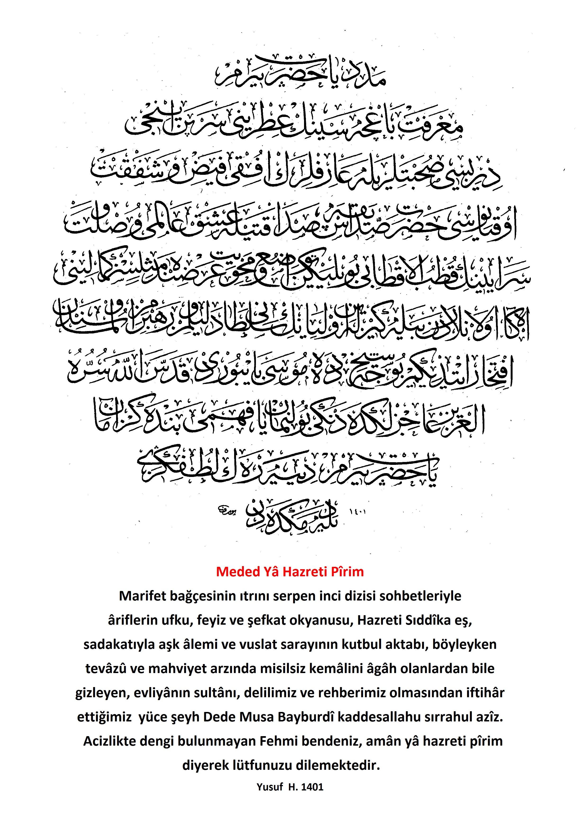 Eş Şeyh Ya Hazreti Seyyid Musa Dede Paşa Bayburdi K.S