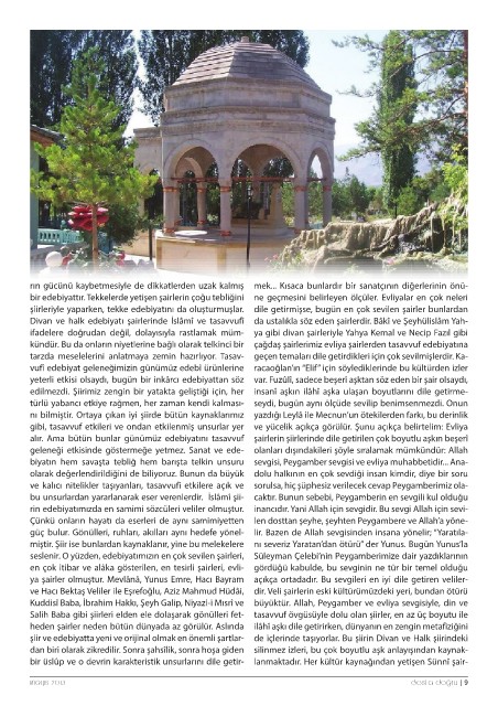 rin edebiyatımızda en samimi sözcüleri veliler olmuştur. inancıdır. Yani Allah için sevgidir. Bu sevgi Allah için sevi-