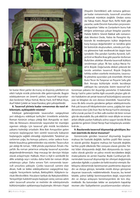rikatı Mevleviliktir. Hocaların tarikatı da Nakşibendîliktir. nusu ilk defa onunla gündeme geliyor edebiyatımızda.