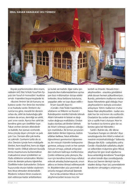 si ve hududu vardır. İlimlerin du- «Cenâb-ı Hak Teâlâ Hazretlerini, fazası Hızır aleyhisselâm - kadar ora-