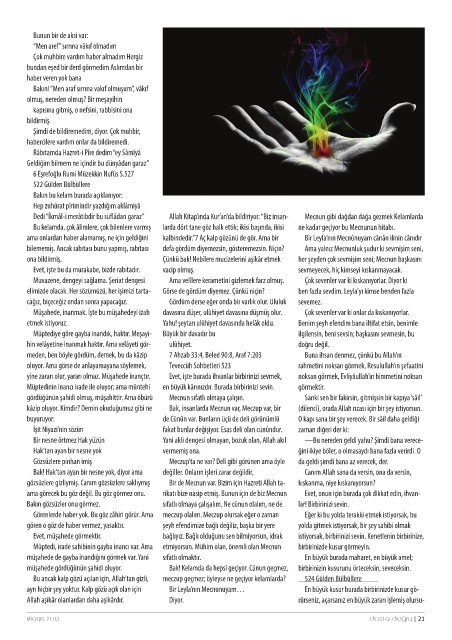 hin velâyetine inanmak haktır. Ama velâyeti gör- rikatı bize nasip etmiş. Bunun için de biz Mecnun Eğer ki bu yolda terakki etmek istiyorsak, bu