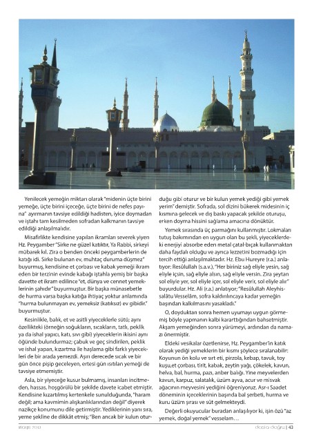 yemeğe, üçte birini içeceğe, üçte birini de nefes payı- yerim” demiştir. Sofrada, sol dizini bükerek midesinin iç