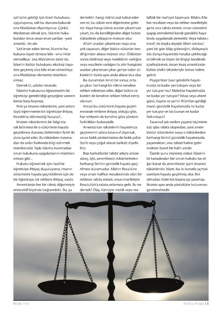 İmanın rükünlerinin bir bilgi ola- her rehberin de kendine göre yöntem Tasavvuf adı verilen yaşantı biçiminin