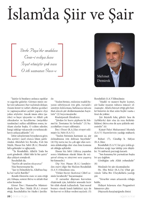 tarafından) zulüm edildikten sonra, in- Risaletpenah Efendimiz: Şiir ikiyüzlü kılıç gibidir faza ile