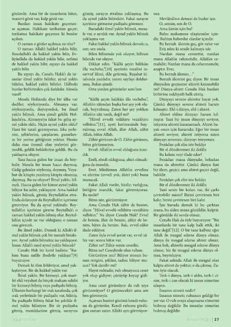 yakîn bilmek. Ama şimdi geldik Hol- Allah’ın zâtından başka her şey yok ola- kılmıştır. Ehl-i dünya, ehl-i ahiret.