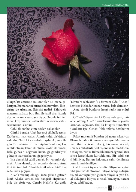 mek. Âlim demek, bir aydınlık demek. Ama sonra karanlıktan kurtuldunuz. Bir cahil var
