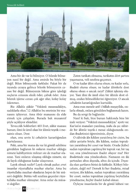 sadıklarla olun.”12 Allah’ın bu emrinin bir ma- Ama esas mesele arif-i billah meşayihle, on-