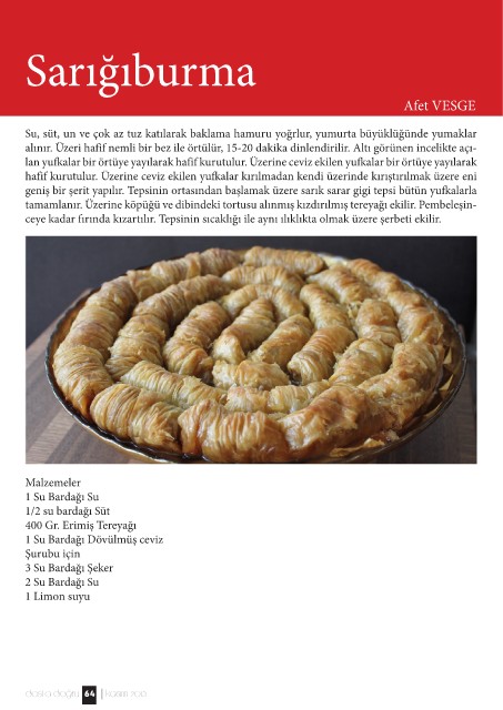 geniş bir şerit yapılır. Tepsinin ortasından başlamak üzere sarık sarar gigi tepsi bütün yufkalarla