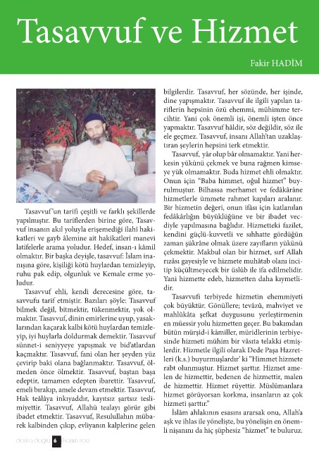 Tasavvuf ehli, kendi derecesine göre, ta- ye yük olmamaktır. Buda hizmet ehli olmaktır.