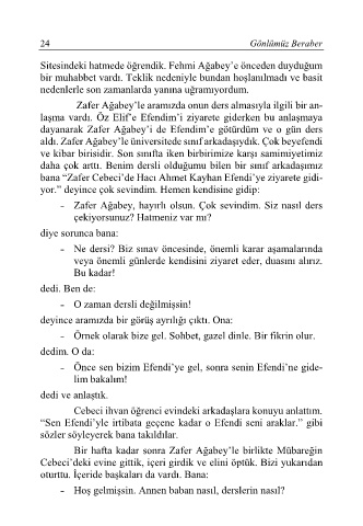 laşma vardı. Öz Elif’e Efendim’i ziyarete giderken bu anlaşmaya