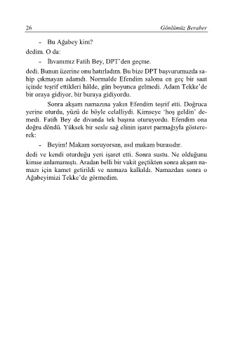 Sonra akşam namazına yakın Efendim teşrif etti. Doğruca