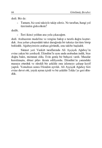 yaptık. Yemekten sonra Efendim ayrıldı. Ali Ayçiçek Ağabey bizi