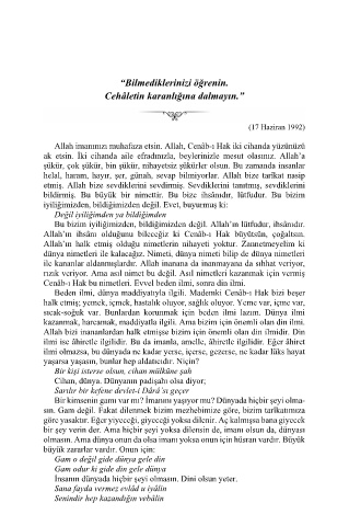 Cenâb-ı Hak bu nimetleri. Evvel beden ilmi, sonra din ilmi.