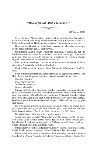ğilsin. İlim bir taraftan zâhirde ilim sahibini yükseltir. İlim sahibini yükseltir