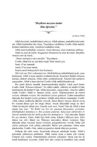 sın. Allah hepinizden râzı olsun. Yaşadığınız müddetçe Cenâb-ı Hak muhab-