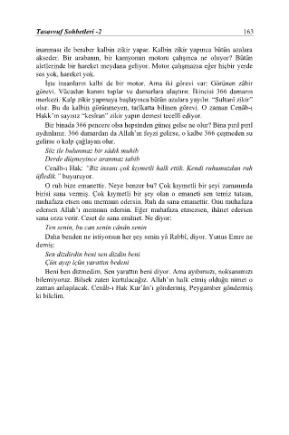 aydınlanır. 366 damardan da Allah’ın feyzi gelirse, o kalbe 366 çeşmeden su