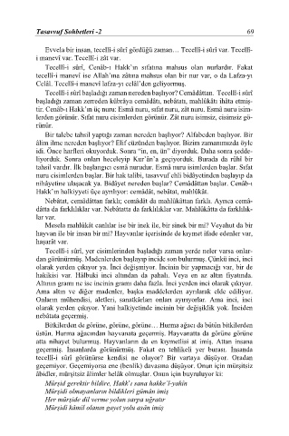lerden görünür. Sıfat nuru cisimlerden görünür. Zât nuru isimsiz, cisimsiz gö-