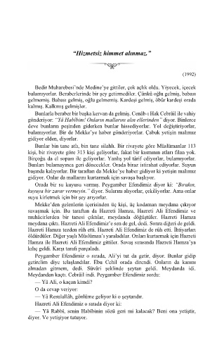 savaşmak için. Bu taraftan da Hazreti Hamza, Hazreti Ali Efendimiz ve