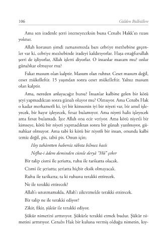 Fakat masum olan kalptir. Masum olan ruhtur. Ceset masum değil,