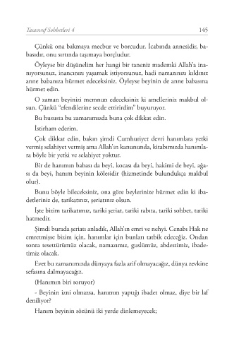 - Beyinin izni olmazsa, hanımın yaptığı ibadet olmaz, diye bir laf
