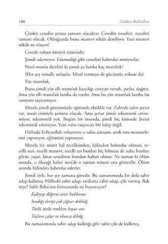 görür, yaşar, fakat cesedinin bundan haberi olmaz. Ne zaman ki ölüm