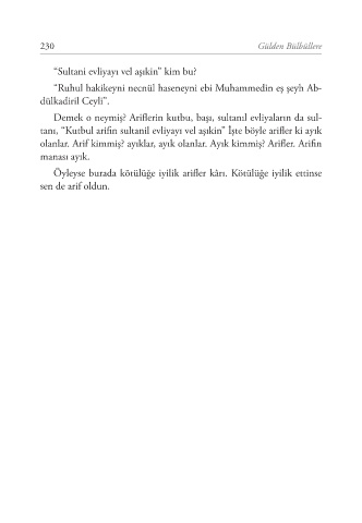 tanı, “Kutbul arifi n sultanil evliyayı vel aşıkin” İşte böyle arifl er ki ayık