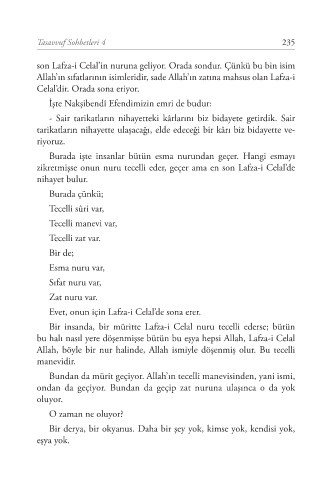 son Lafza-i Celal’in nuruna geliyor. Orada sondur. Çünkü bu bin isim