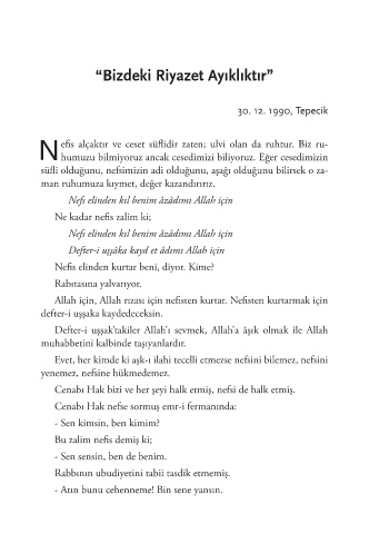 “Bizdeki Riyazet Ayıklıktır”