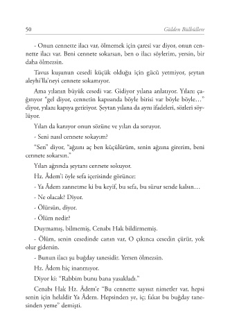 diyor, yılanı kapıya getiriyor. Şeytan yılana da aynı ifadeleri, sözleri söy-