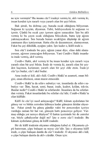 dan vermiş. Fakat insanlardaki bu sıfatlar cüz’idir, Cenâb-ı Hakk’ta