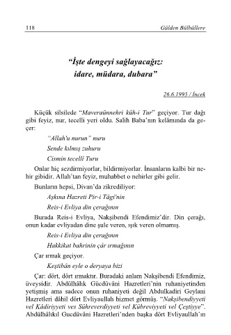 gibi feyiz, nur, tecelli yeri oldu. Salih Baba’nın kelâmında da ge-