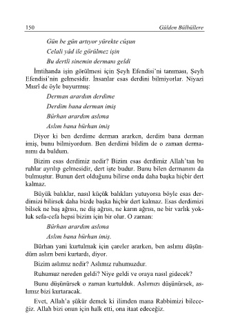 bulmuştur. Bunun dert olduğunu bilirse onda daha başka hiçbir dert