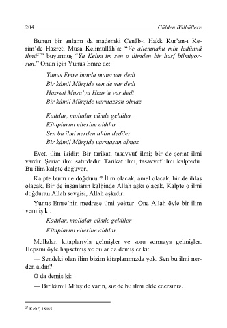 ilmâ ” buyurmuş “Ya Kelim’im sen o ilimden bir harf bilmiyor-