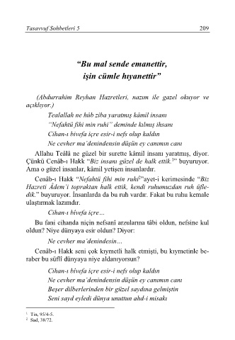 Cenâb-ı Hakk “Nefahtü fihi min ruhi ”ayet-i kerimesinde “Biz