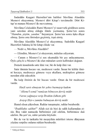 Mevlâna Alaeddin Mesnevi’yi okuyormuş. Sadeddin Kaşgarî