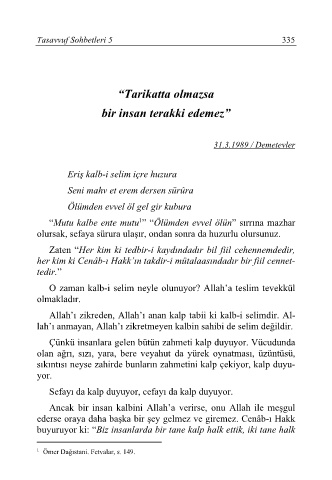 “Mutu kalbe ente mutu ” “Ölümden evvel ölün” sırrına mazhar