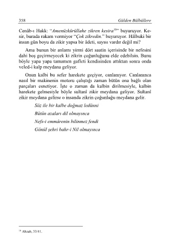 dahi boş geçirmeyecek ki zikrin çoğunluğunu elde edebilsin. Bunu