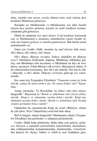 olacak, yetmiş iki tanesi fırka-i nar, bir tanesi fırka-i nâci” buyur-